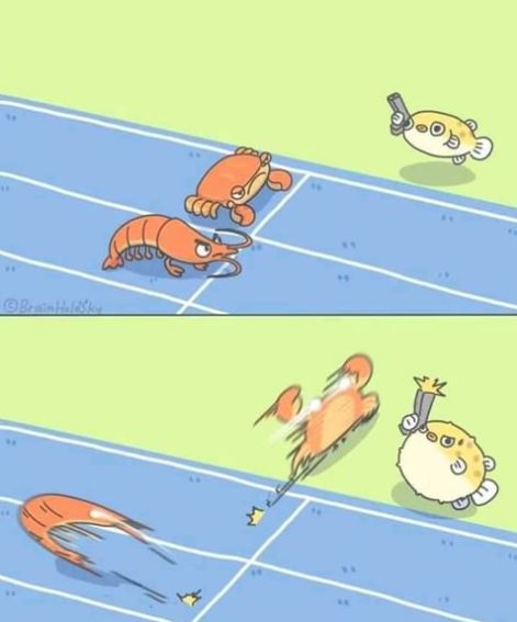 1.11.1989 14:30 Vysvetlenie vtipu: Na štartovacej čiare vidíme zástupcu zahnívajúceho kapitalizmu - raka a predstaviteľa pokroku, čize socializmu - kraba. Po znamení signálnym revolverom sa spiatočník rozbehol vzad, zatiaľ čo pokrokový krab sa rozbehol vpred!!! So súdružským pozdravom splníme závery 16 zjazdu KSČ, okresný tajomník strany p67.