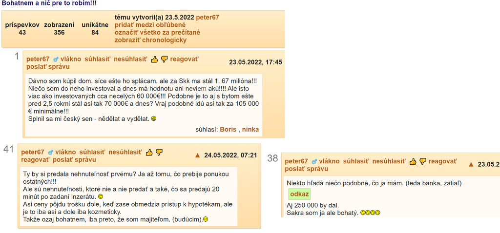 dostanem dom za 10000 eur. Predám ho za 15000 eur. Kupca ho následne predá za 20000 eur, a další kupca za 25000 eur, další zas za 30 tisíc eur, a takto sa tá cena pomaly nafukuje...