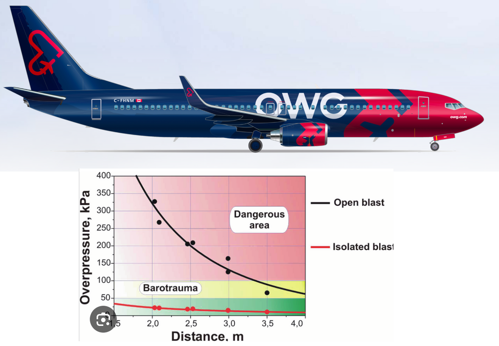 https://www.dzio.sk/zumpa/gallery/1692640351.png Hmmm, také komerčné lietadlo može uniesť až 30 ton nákladu. Teoreticky, ak by sa do lietadla umiestnil sud o rozmeroch 15x2x1 = 30m3, ktorý by obsahoval 30m3 termobarickej munície etylen oxidu, vážil by 30 ton a dostal by sa pri jeho výbuchu ekvivalent o hodnote 120 ton TNT (kedže jeho výbušnosť je 4 násobok silnejšia ako TNT). 120 ton TNT je 499200000000 Joulov. Takáto sila má aj 750 metrov od výbuchu silu 70 KPA, čo je dostatočná sila ktorá mož...