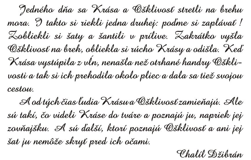 Klebety hovoria, ze Pravda a loz sa raz stretli. Loz pozdravila Pravdu a dodala : " Dnes je naozaj pekny den". Pravda sa rozhliadla, pozrela na oblohu a skutocne, den bol nadherny. Stravili spolu nejaky cas pred velkou studnou. Loz polozila ruku do vody a obratila sa k Pravde. "Prijemne tepla voda ", povedala. " Ked chces, môzme si spolu zaplavat. " Pravda bola opät obozretna. Polozila ruku do vody, a voda bola naozaj tepla. Chvilu sa kupali, ked zrazu zo studne vysla Loz, obliekla si saty Pravdy a zmizla. Pravda, nahnevana, vyplazila sa von naha a hlada Loz, aby si zobrala saty spät. Svet, ktory videl nahu Pravdu, odvratil zrak, plny hnevu a pohrdania. Uboda Pravda sa hanbila, obratila sa k studni a navzdy zmizla. Odvtedy cestuje Loz svetom oblecena za Pravdu, aby uspokojovala potreby sveta a svet uz nechce vidiet nahu Pravdu. No, predsa, ten, kto chce najst pravdu, ma sancu ju znova vidiet, no nikdy nie je napovrchu, ale je skryta hlboko vo vnutri a preto ju treba hladat srdcom. odkaz